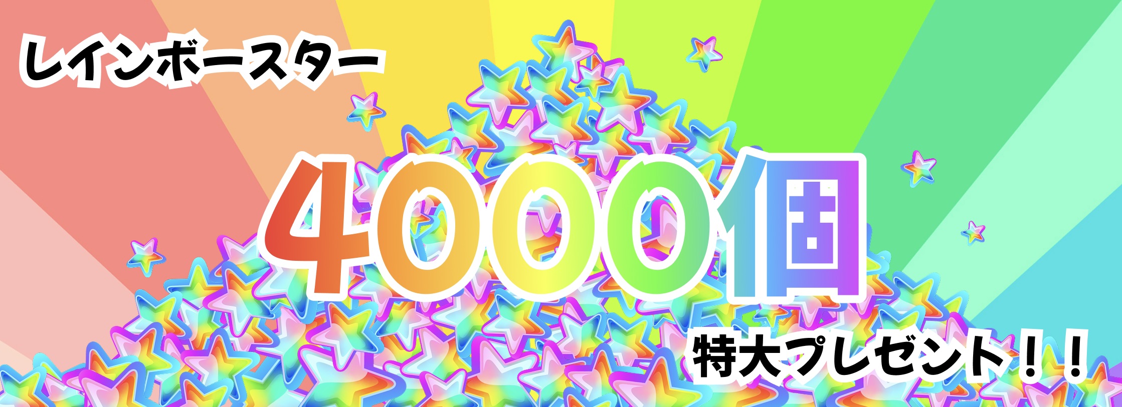 ※景品表示法の規定により、レインボースターのお一人様あたりの最大獲得個数は20個が上限となりますので、メダル獲得人数によっては4,000個を下回る場合があります。