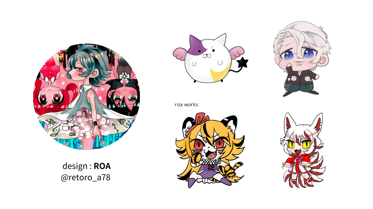 イラストレーターとしては、ロゴやキャラクターデザイン、SDイラストなど幅広い種類のデザインのイラストに対応しています。
