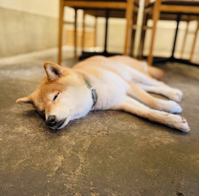 マイペースな看板犬「ムサシ」の癒しとともに、『茶倉 SAKURA』で素敵なお茶の時間をお楽しみください。
