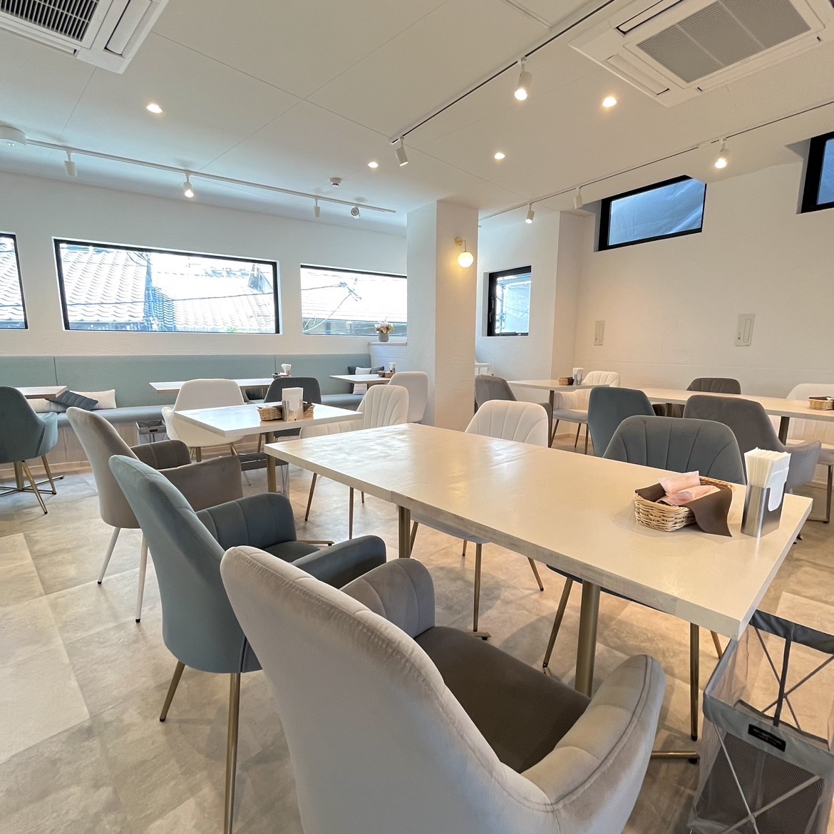 店内は、エーゲ海のサントリーニ島をイメージした空間&京都らしい和モダンな空間の2エリアを用意していますので、あなたのお好きな空間で極上のパンケーキをごゆっくりお楽しみください。