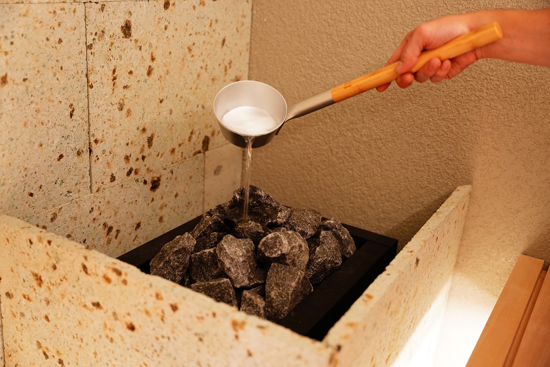 セルフロウリュには、若返りのアロマオイルと言われるフランキンセンスを使用。心を落ち着かせたい時、疲れやイライラから開放されてリラックスしたい時などにもおすすめです(+250円でアロマより長時間香りが長持ちするほうじ茶・ジャスミン茶・ルイボスティーロウリュも楽しめます)。