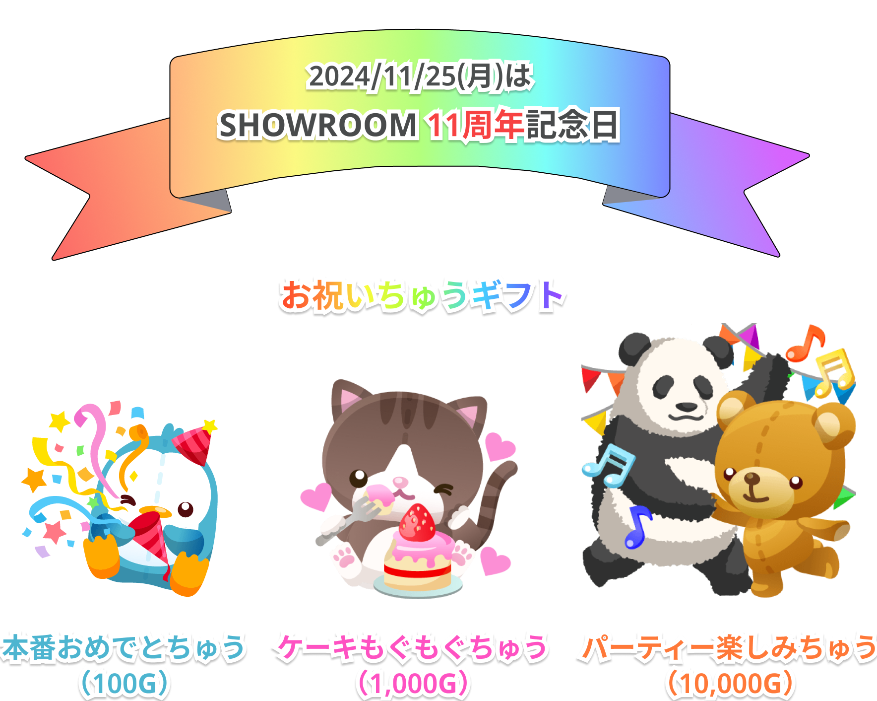 お祝いちゅうギフトをたくさんギフティングして、11周年を一緒にお祝いしましょう♪