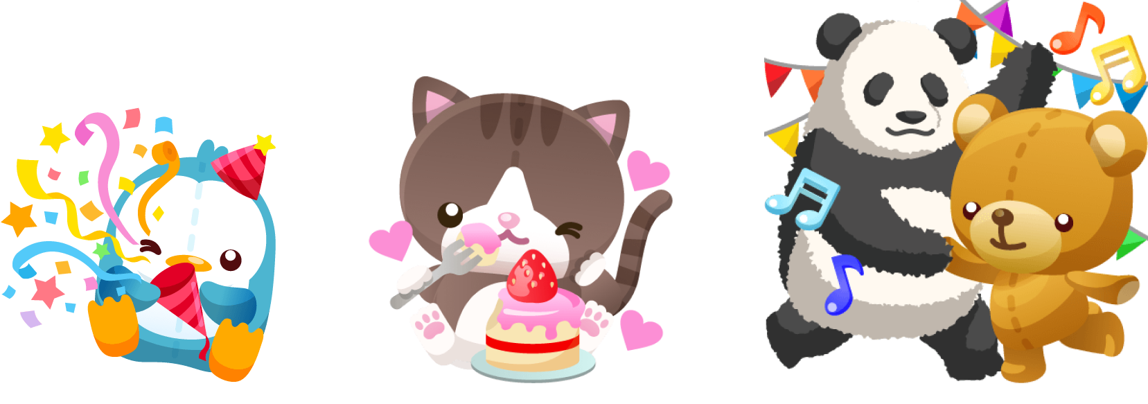 ということで、今週はSHOWROOMのオリジナルキャラクターたちがお祝いをしているお祝いちゅうギフトをご用意しました!