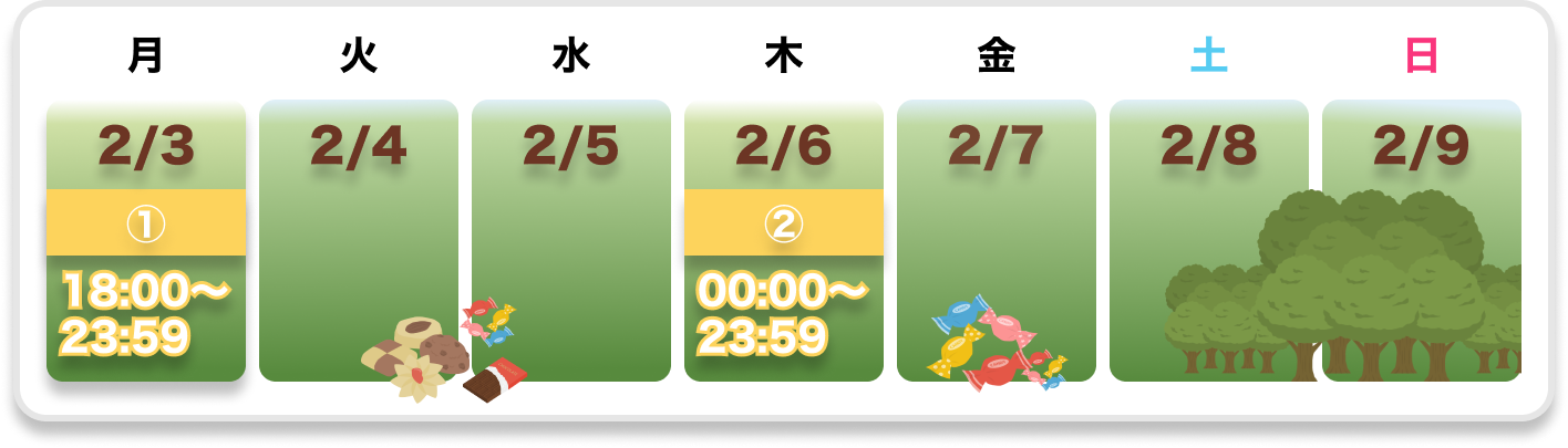 Monday, 03/02/2025 18:00 〜 Sunday, 09/02/2025 21:59