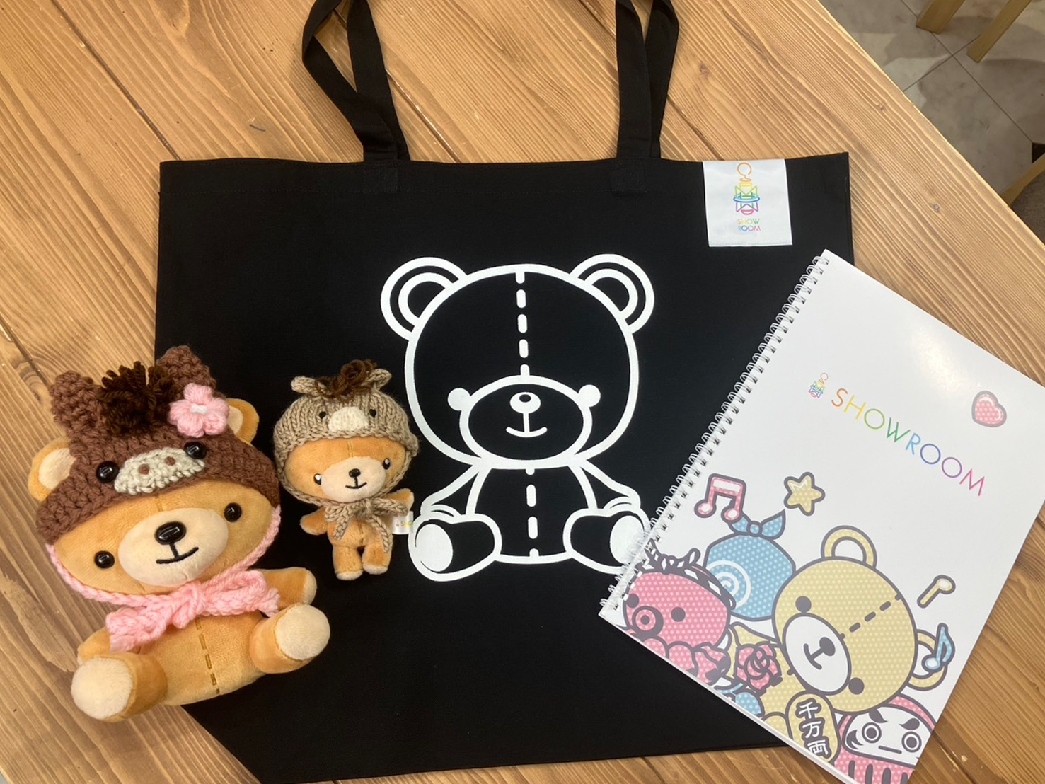 ・SHOWROOMミニクマのぬいぐるみ+クマチャーム+トートバッグ+スケッチブック詰め合わせを1つプレゼント!