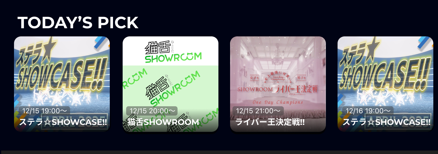 ・SHOWROOMホームのTODAY`S PICKにあなたのルームを掲載!