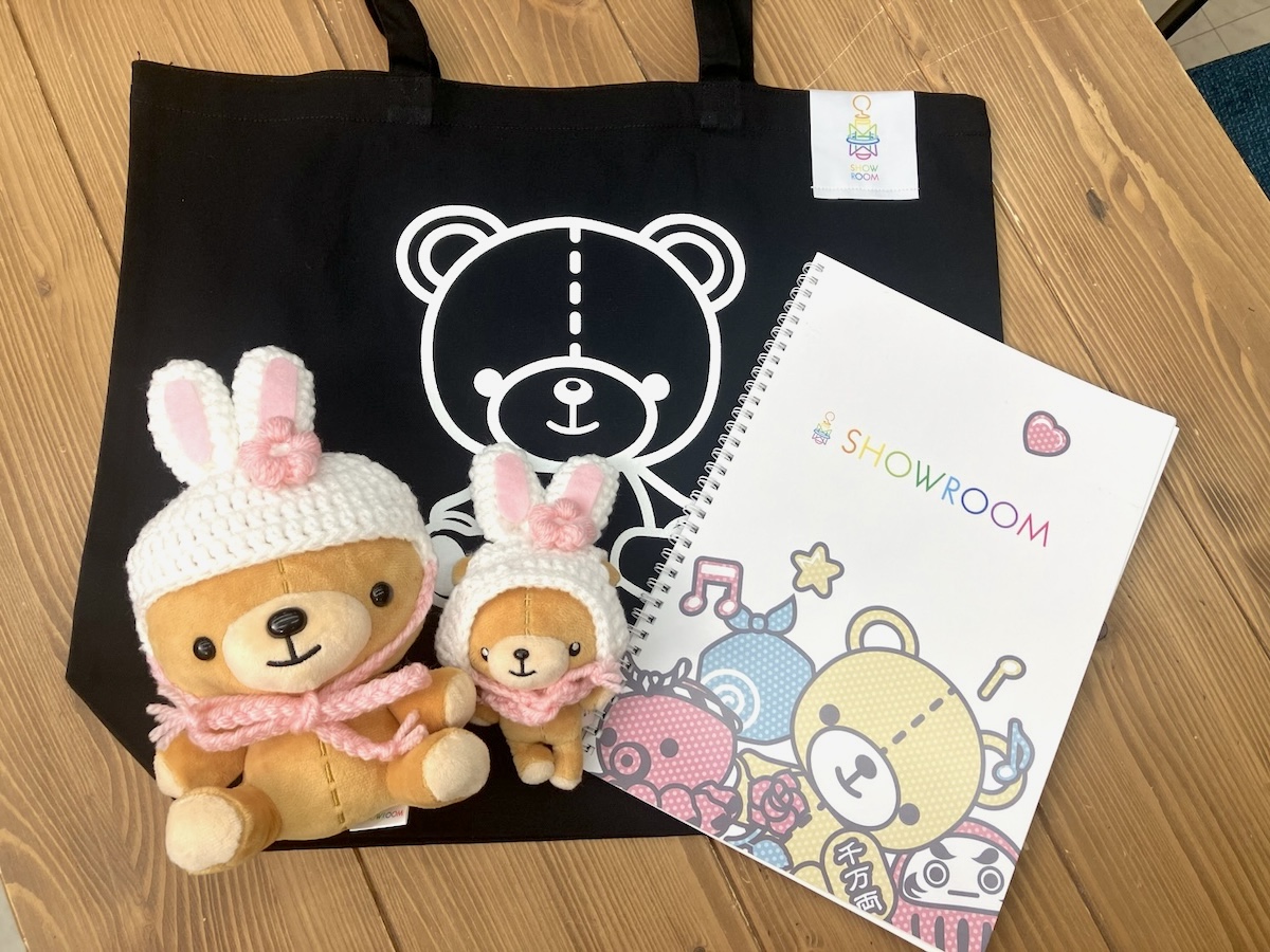 ・SHOWROOMミニクマのぬいぐるみ+クマチャーム+トートバッグ+スケッチブック詰め合わせを1つプレゼント!
