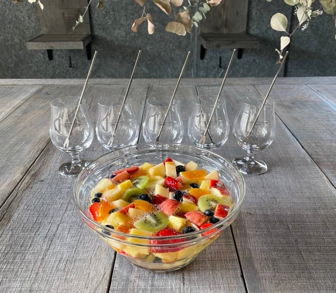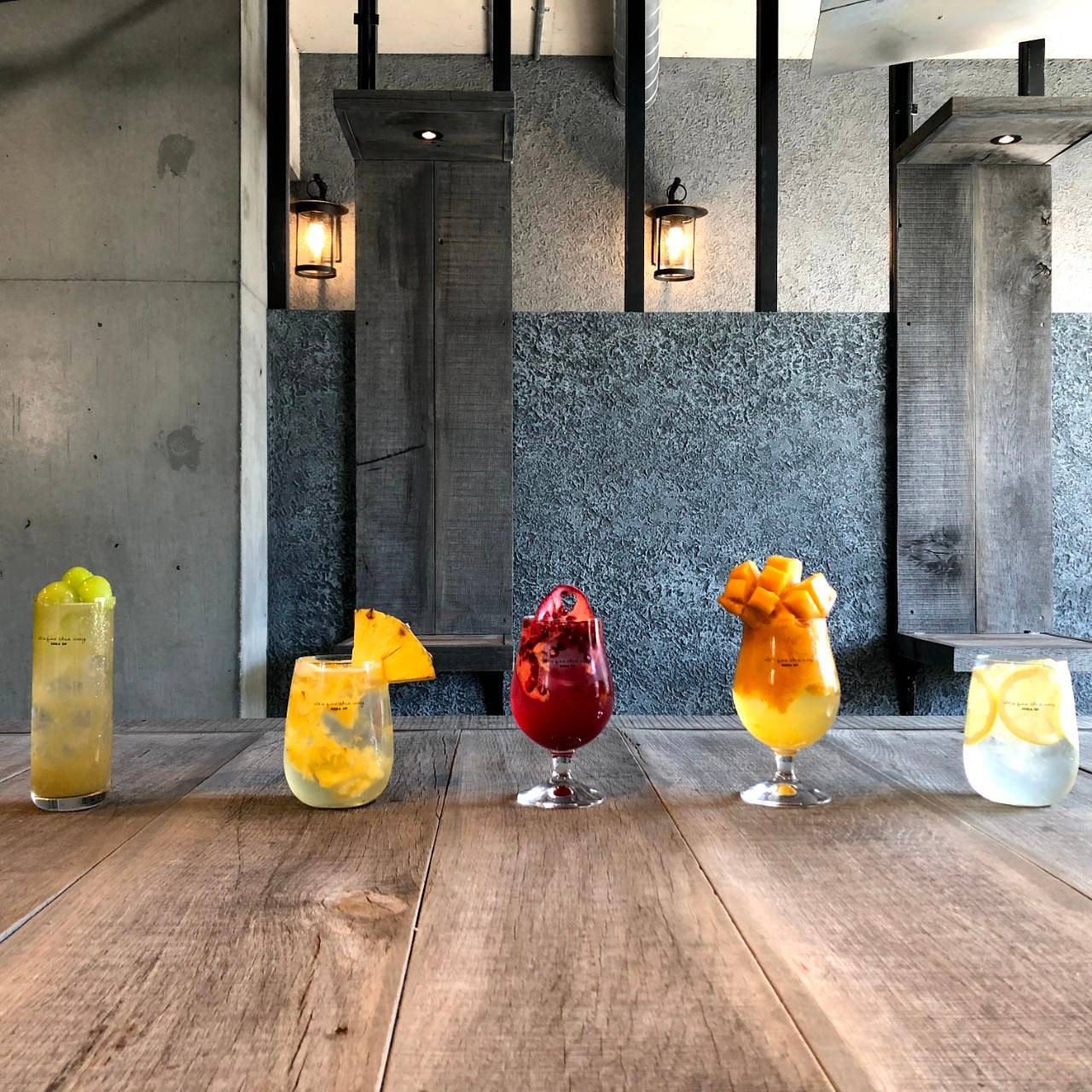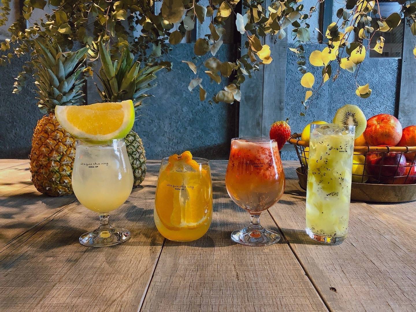 木の温かみと緑の爽やかさが調和したおしゃれ空間では、「マンゴー」や「メロン」、「ザクロ」、「パイナップル」、「キウイ」、「リンゴ」といった季節の瑞々しい果実がたっぷり入ったフレッシュフルーツサワー&ソーダを楽しむことができます。