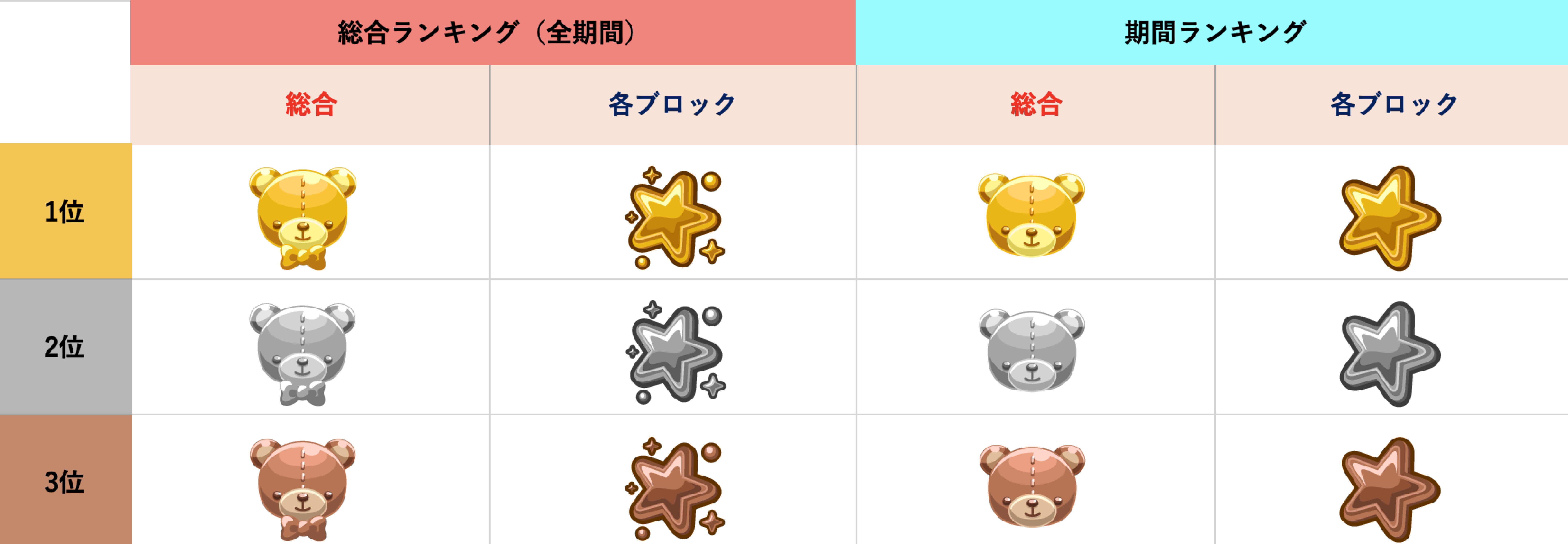 | 10 | 30000 | 3万pt達成![Gold][Silver1〜3]ブロックランキング1位特典獲得条件達成! | ||