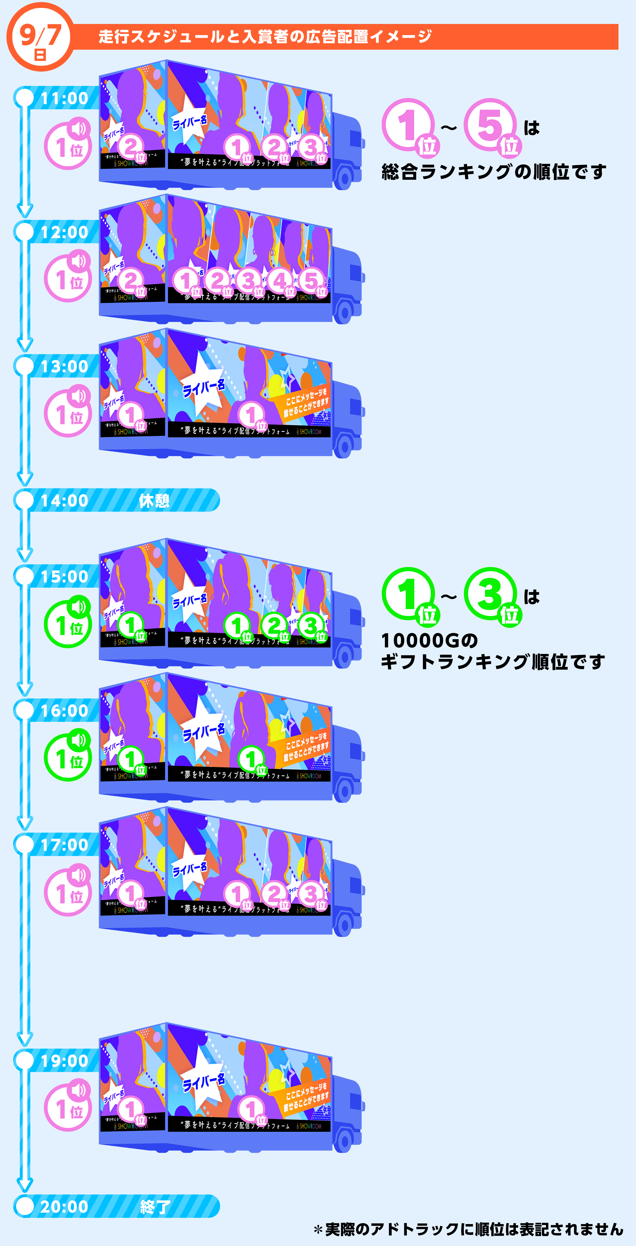 ・2025/08/20(水)15:00までに、総合ランキング1位とギフトランキング1位の方は、3分〜5分程度の尺の音声データを、WAVまたはMP4形式でご提出ください。