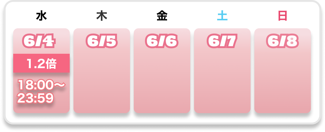 ※対象者には、1.2倍対象日の翌日23:59までにポイント加算いたします。
