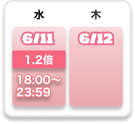 ※対象者には、1.2倍対象日の翌日17:59までにポイント加算いたします。