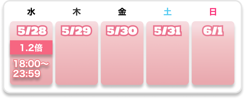 ※対象者には、1.2倍対象日の翌日23:59までにポイント加算いたします。