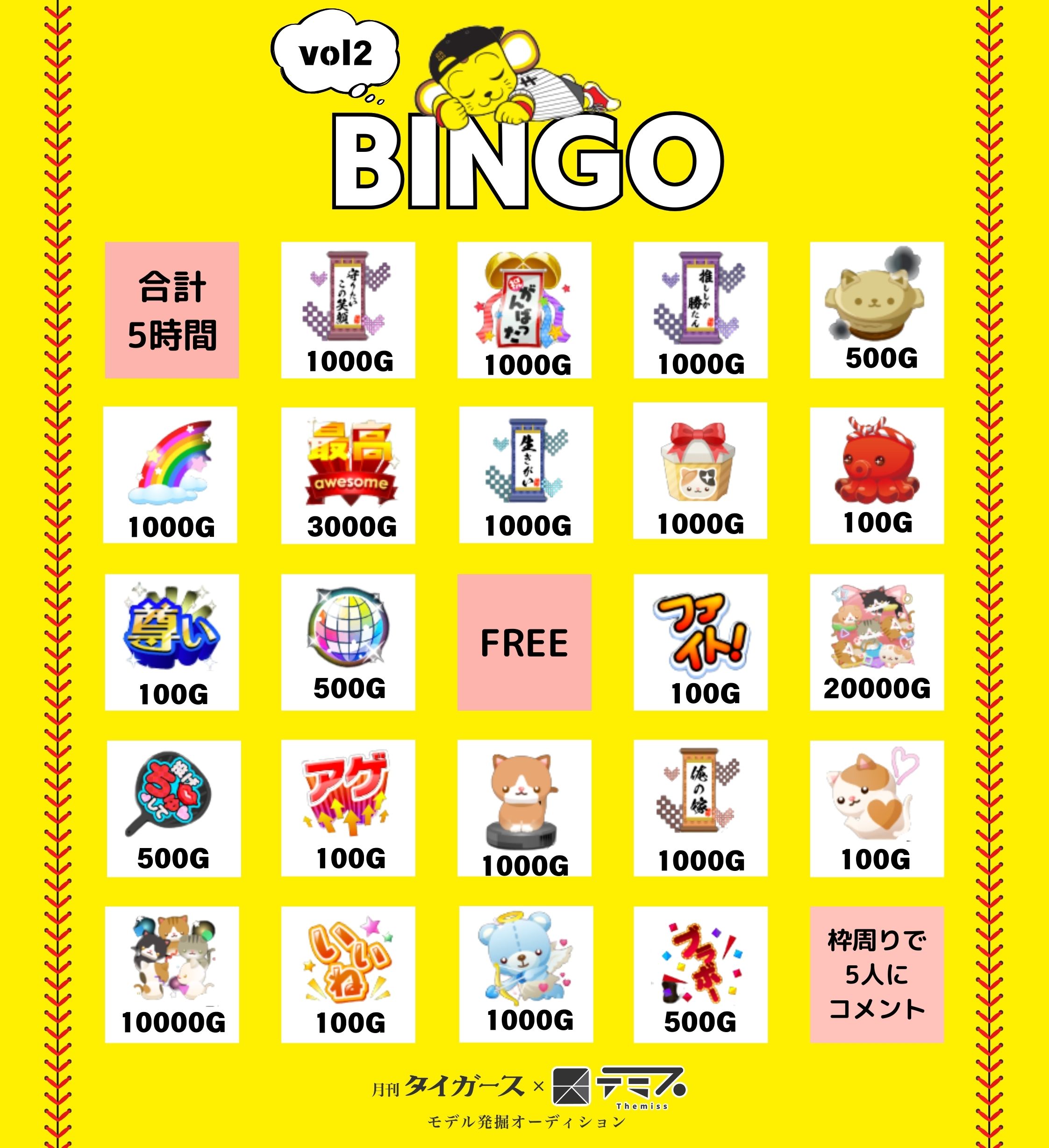 詳しくは本イベントページの「BINGOについて」の項目をご確認ください。