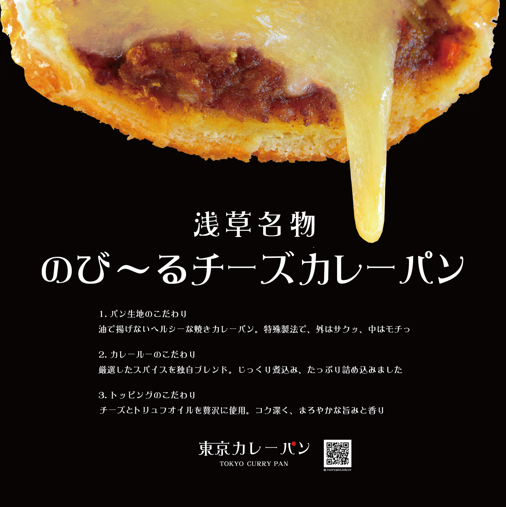 1. 浅草雷門本店限定商品「トリュフ香る・のび〜るチーズカレーパン」。