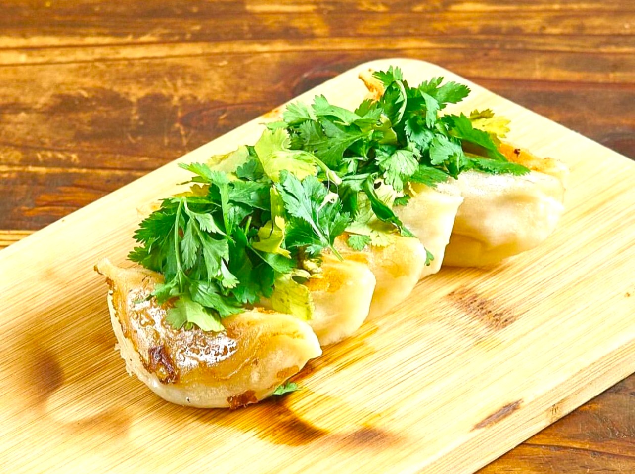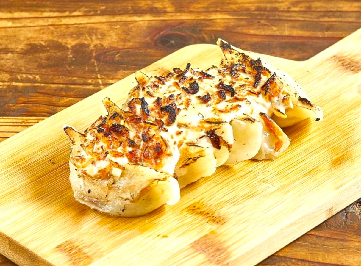 隠れ家的で落ち着いた雰囲気あふれる店内では、トマトとチーズをこんがり炙った「トマトチーズ炙り餃子」、明太子とノリの風味がベストマッチの「明太マヨ炙り餃子」をはじめ、「ザーサイタルタル炙り餃子」、「パクチーもりもり餃子」など、バラエティに富んだ創作餃子をたっぷりと楽しむことができます。