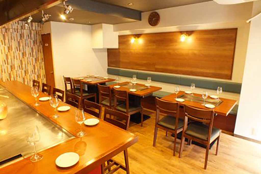 ウッドを基調とした温かみのある店内では、但馬牛や佐賀牛といった上質な国産牛を丁寧に焼き上げたステーキをはじめ、花畑牧場直送のラクレットチーズをたっぷりとかけた季節の焼き野菜、新鮮なシーフード、お好み焼きなど、熱々鉄板料理の数々を気軽に楽しむことができます。