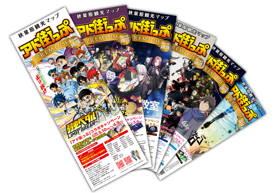 アトレ秋葉原、秋葉原ラジオ会館、AKIBAカルチャーズZONE、ボークス秋葉原ホビー天国2、GiGO、ソフマップ、KOTOBUKIYAといった秋葉原の主要スポットをはじめ、秋葉原全域160ヶ所以上にて設置・配布している秋葉原の観光ガイドマップです。現在、ホビーショップ・飲食店舗・アニメ/ゲームコンテンツなどを中心にご紹介する「PREMIUM」版と、メイド・コンセプト喫茶・ライバー情報などを中心にご紹介する「Sweet」版を、毎月10日に計6万部発行しております。