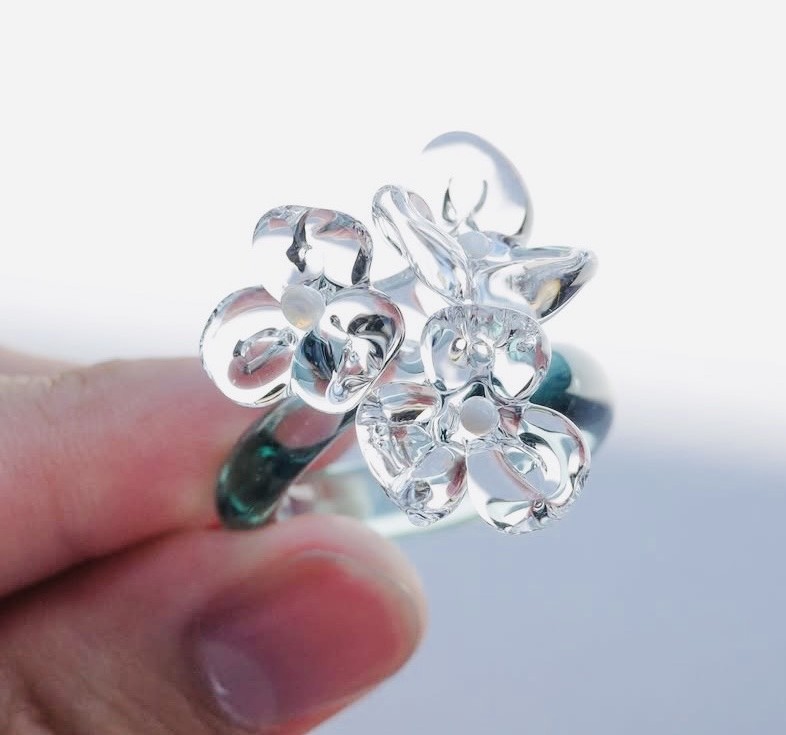 ガラスは半永久的に劣化せず、錆びることも腐食することもありません。メッキのように色褪せていくこともなく、手にした時の透明感をそのままに保ち続ける素材です。また、金属アレルギーに悩む方や、現在アクセサリーで肌が荒れる不安を感じている方でも、安心して身に着けられるのもガラスの大きな魅力のひとつです。