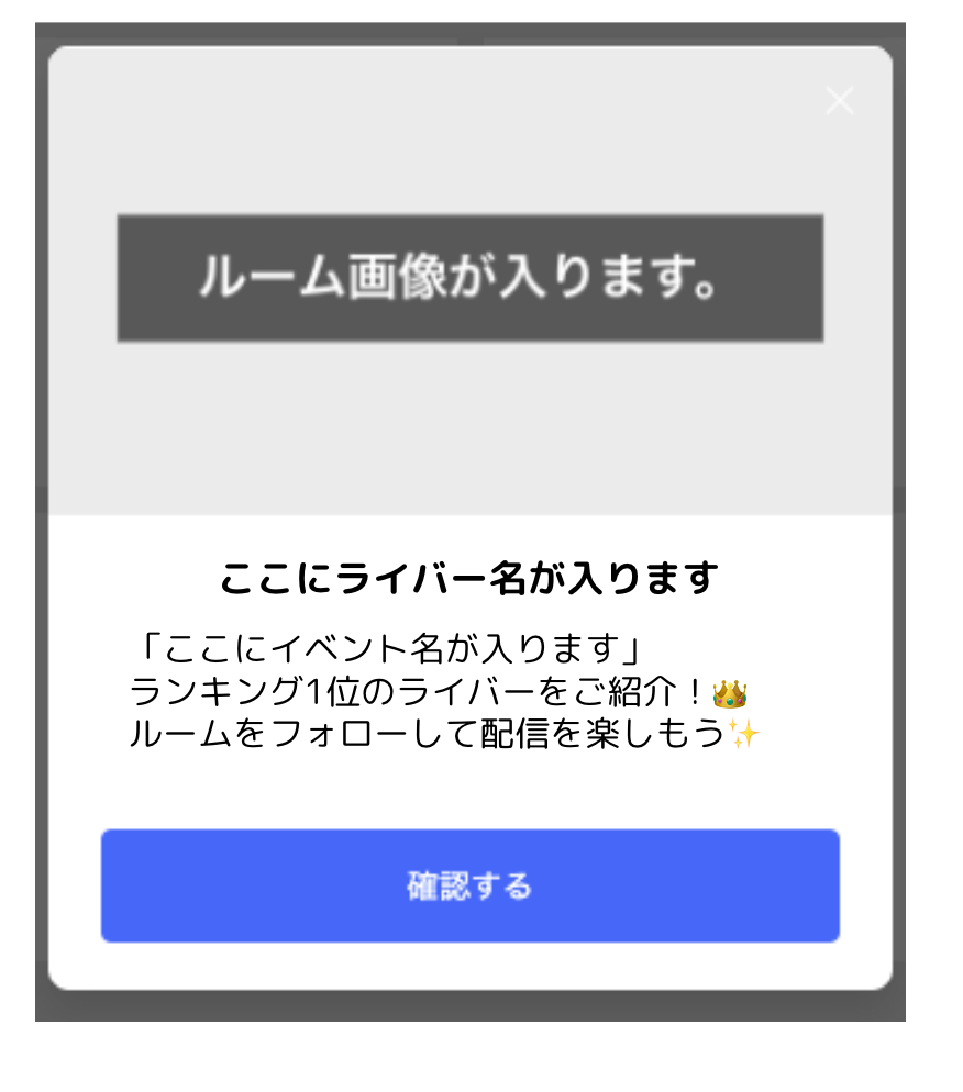 ・ポップアップに掲載を希望するSHOWROOMのルーム画像(詳細は下記参照)