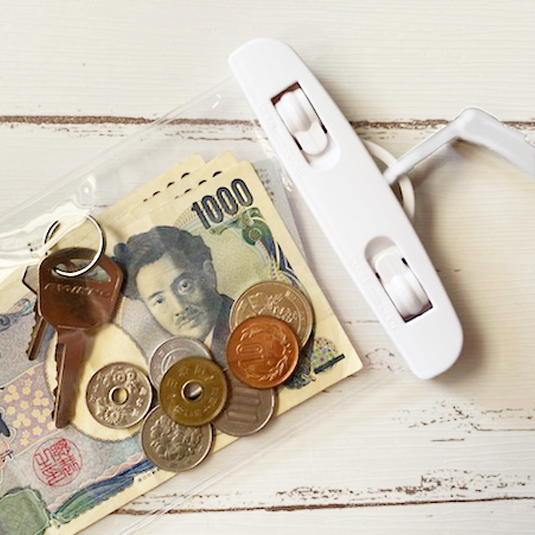 防水レベル最高水準である「IPX8」を取得しており、ケースに入れたままスマホの操作も可能。もちろん、スマホだけでなく、カードや鍵、紙幣や硬貨等の貴重品を入れるケースとしても使えるので、大事なものを濡らさずに肌身離さず管理することができます♪