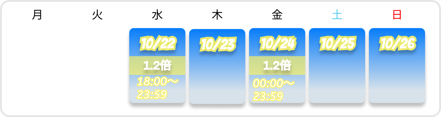 ※対象者には、1.2倍対象日の翌営業日23:59までにポイント加算いたします。