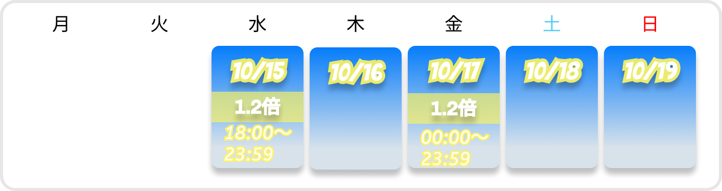 ※対象者には、1.2倍対象日の翌営業日23:59までにポイント加算いたします。