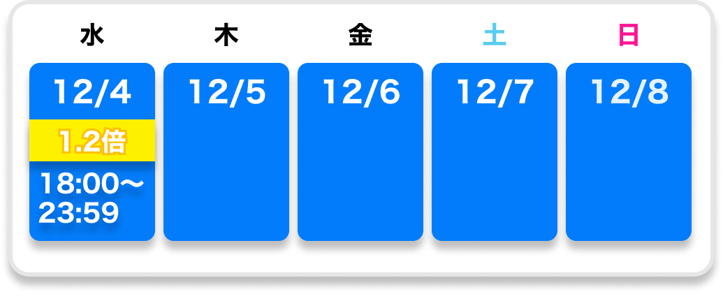 ※対象者には、1.2倍対象日の翌日23:59までにポイント加算いたします。