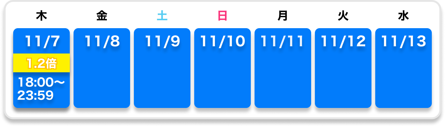 ※対象者には、1.2倍対象日の翌日23:59までにポイント加算いたします。