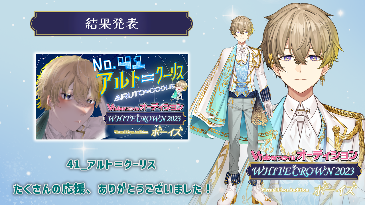 数々のバーチャルキャラクターを手掛ける株式会社DELTA-VとVTuber界の出版誌として地位を確立したVTuberスタイル編集部との共催Vオーディション「株式会社DELTA-V × VTuberスタイル共催オーディション~WHITE CROWN2023-ボーイズ~」が開催! 決勝でランキング1位になった方は、ののまろ氏描き下ろしの立ち絵、三面図、Live2Dデータとスタートアップ軍資金5万円で活動をスタートできます! ※こちらは本選ページになります。
