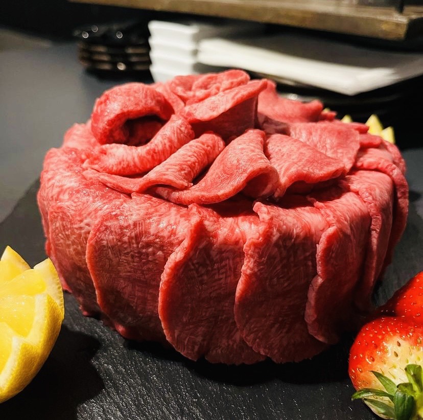 A5ランクの黒毛和牛や旬の野菜など素材にこだわるのはもちろんのこと、お肉を”もっと美味しく魅せる”ためのカットや盛り付けにも心血を注いでいます。また、「バースデー肉ケーキ」などお客のリクエストに真摯に応える姿勢も人気の理由のひとつ。ビジネスマンに限らず、若い女性やカップルなど多くの方の心を掴んでいます。