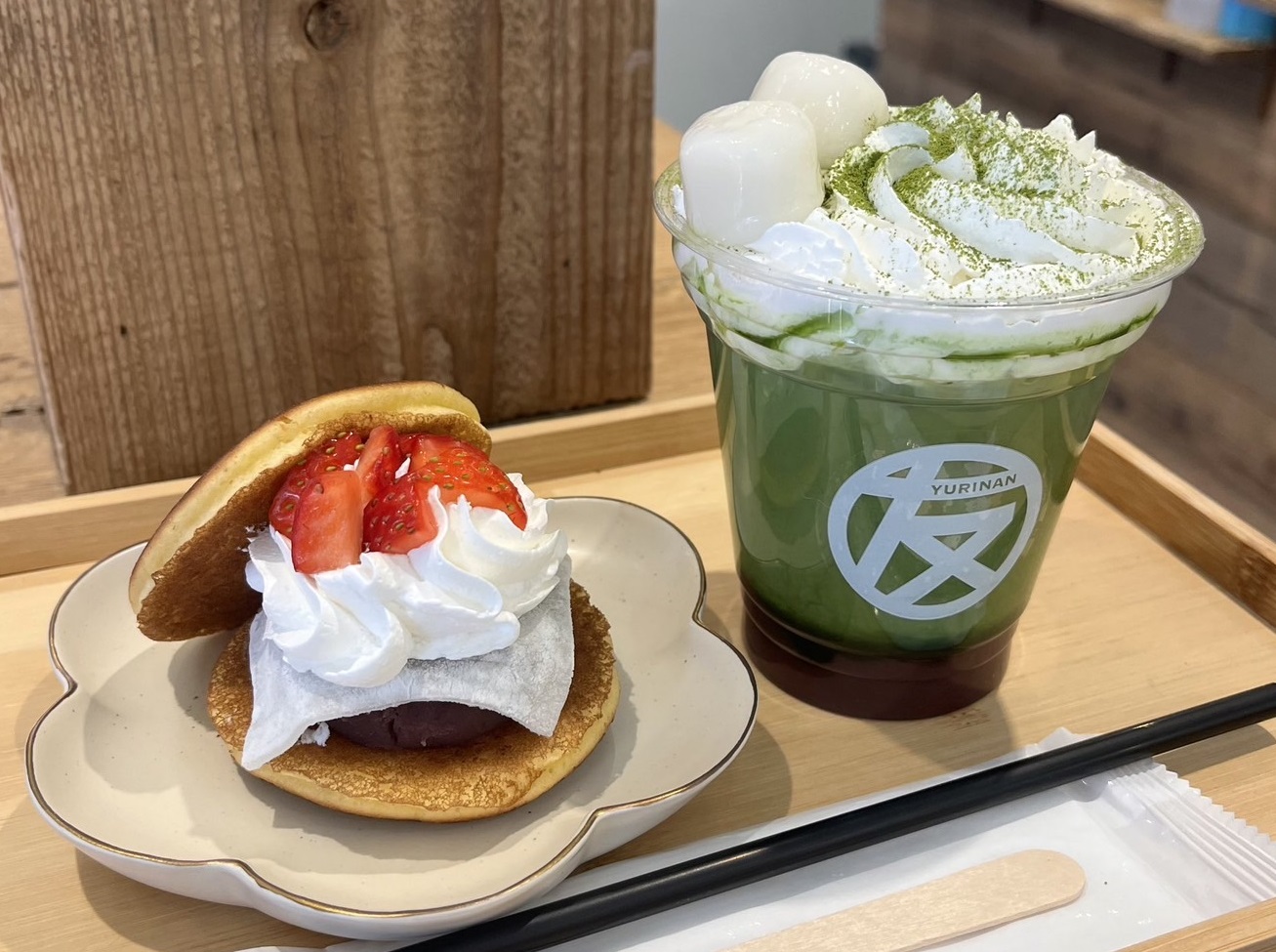 どら焼きは、あんこやカスタードといった定番から、いちごクリーム、ショコラムースクリーム、スイートポテトあん、W抹茶白玉いちご、めん玉サンドといった個性的なものまで目移り必至のラインナップ。ドリンクは抹茶を中心にお楽しみいただけます。