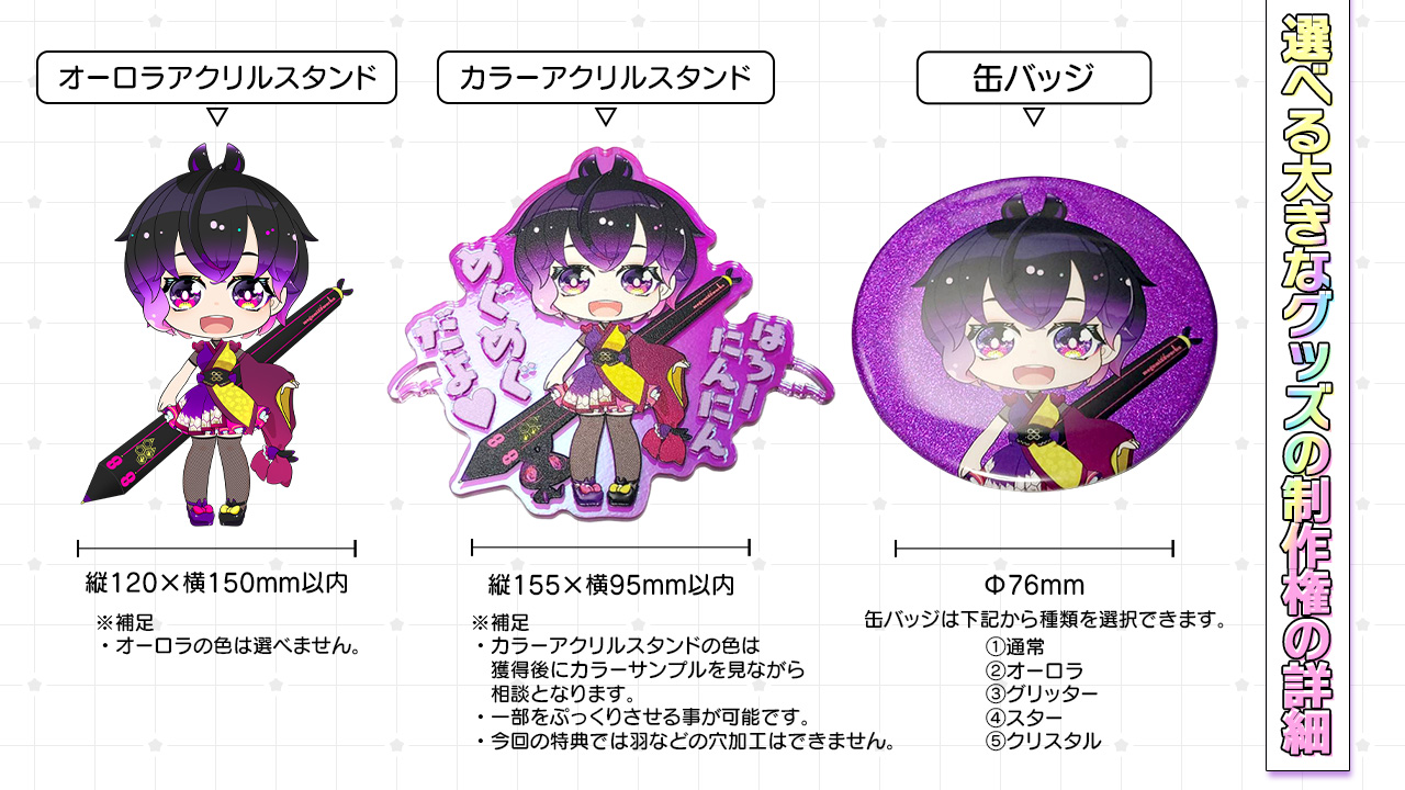 ②選べる大きなグッズの制作権獲得!(以下の中から1種類)