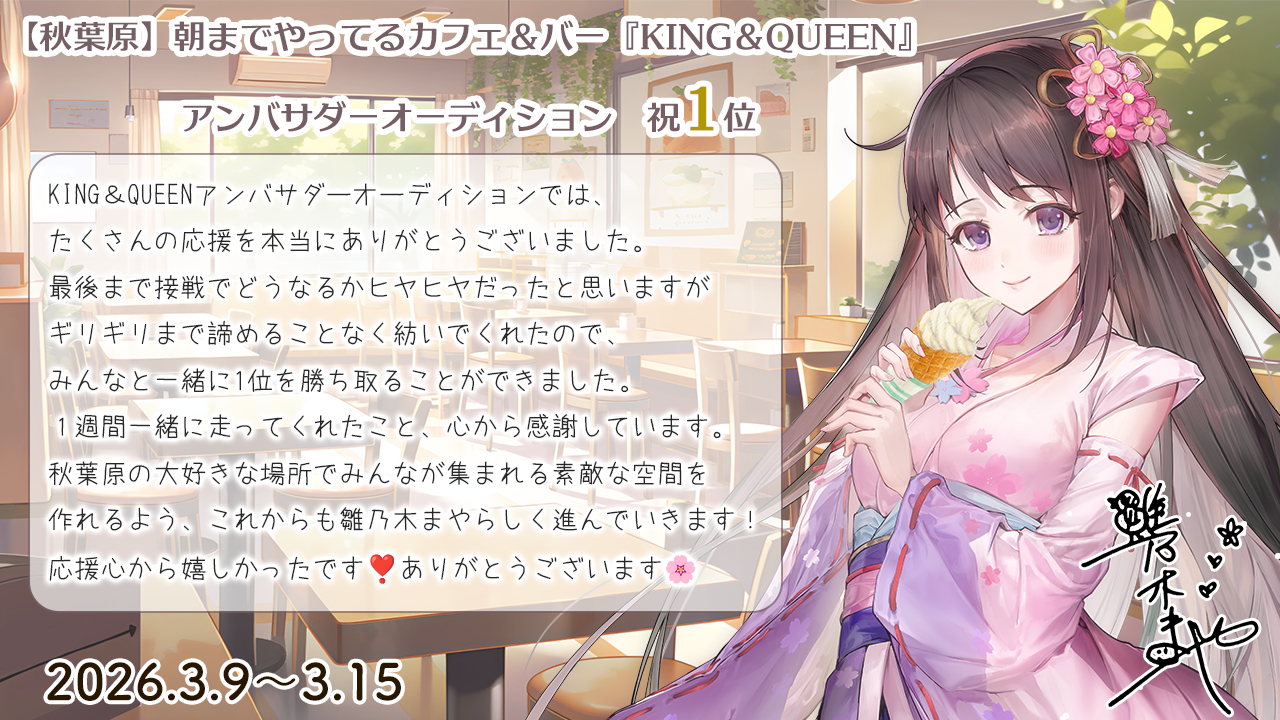 3月9日(月)〜15日(日)まで朝までやっているカフェ&バー「KING&QUEEN」のアンバサダーオーディションに挑戦することにしました。