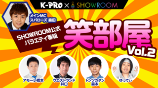 多くのお笑いライブを主催する「K-PRO」の協力の元、SHOWROOM公式バラエティー番組「笑部屋」の配信が決定!