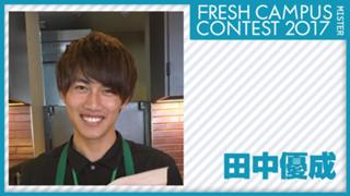 FRESH CAMPUS CONTEST 2017(https://misscolle.com/frecam2017)に参加中の関西外国語大学国際学部1年の田中優成です!