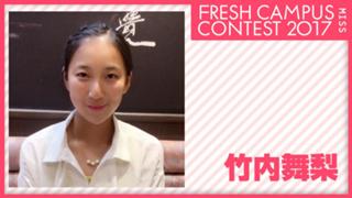 FRESH CAMPUS CONTEST 2017(https://misscolle.com/frecam2017)に参加中の立命館大学・産業社会学部・現代社会学科・現代社会専攻1年の竹内舞梨です!