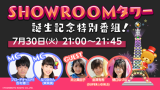 SHOWROOMタワーの誕生を記念して7/30(火)21:00-21:45に特別番組を配信します!