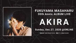 2020年12月8日(火)にリリースされる、福山雅治デビュー30周年記念オリジナルアルバム『AKIRA』全収録曲をパフォーマンスする、自身初のオンラインライブの開催が決定した。