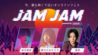 「JAM JAM powerd by smash. 」は豪華アーティストとVtuberによるこの日限りのスペシャルなパフォーマンスを、スマートフォン・PCから、誰とでもどこからでも楽しむことができる全く新しいオンラインフェスです。