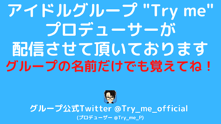 アイドルグループTryme(トライミー)のプロデューサールームです。ファンの皆さんと交流の場として配信しています。