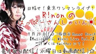 目指せ!東京ワンマンライブ☆★ 山梨でシンガー活動をしている、R!nonのルームです。 山梨一の晴れ女、サンシャインベイベーが合言葉♡♡ ♥R!non's profile 名前:R!non(りのん) 性別:♀ 血液型:A型 誕生日:4月14日 好きな物:サメ、うさぎ、マイメロディ、苺、ラーメン、ピンク色 嫌いな物:虫、爬虫類、梅干し、パクチー ♥ アニソン風のオリジナル楽曲と、アニソン、ボーカロイドのカバーを歌っている、山梨県出身の天然系晴れ女、それがR!non。 パワフルに歌いこなすロックソングたちは、R!nonの魅力を余すことなく伝えてくれる。 (自称)山梨一の晴れ女、合言葉はサンシャインベイベー!! そんなR!nonが、東京でのワンマンライブを目指しながら、みんなと明るく楽しく元気よく作り上げていくルーム、それがR!nonのはっぴーさんしゃいん☀︎である。 ♥ 現在CD作成中! 発売日等は随時SHOWROOMにて告知!! ♥ 基本毎日放送中 ※水曜日のみ動画配信(だいたい昼頃)